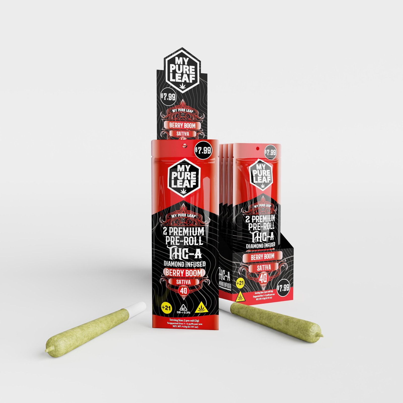 Type: Sativa – THC-A diamond-infused premium pre-rolls